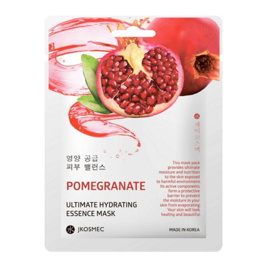 قناع ورقي الترطيبب والتعذية ب الرمان - من جي كوزمك: يحتوي هذا القناع المرطب النهائي على مستخلص الرمان الذي يحمي توازن البشرة ويغذيها.