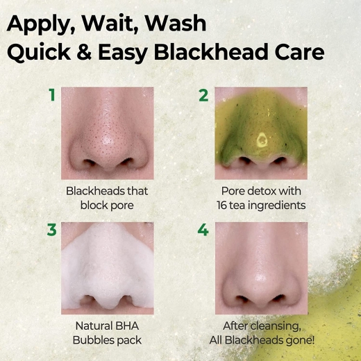 تعمل رغوة أحماض بيتا هيدروكسي وحبيبات الكونجاك وأوراق الشاي الأخضر المتوفرة في التركيبة بأحجام مختلفة كمقشر طبيعي لطيف على البشرة لإزالة الرؤوس السوداء.