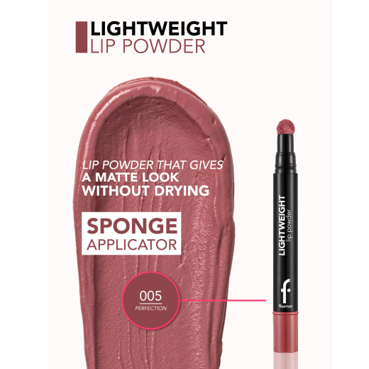 روج كريمي اسفنجي رقم 5- من فلورمار: احمر الشفاه خفيفة الوزن من Flormar هي منتج مكياج شفاه خفيف الوزن يحتوي على مستخلصات مرطبة. يحتوي على زبدة الشيا وفيتامين E وزيت الزيتون. يتميز بقوام سائل رقيق وكثافة صبغية متوسطة. تحتوي على أداة توزيع إسفنجية على طرفها. ي وفر استخدامًا مريحًا وخفيف