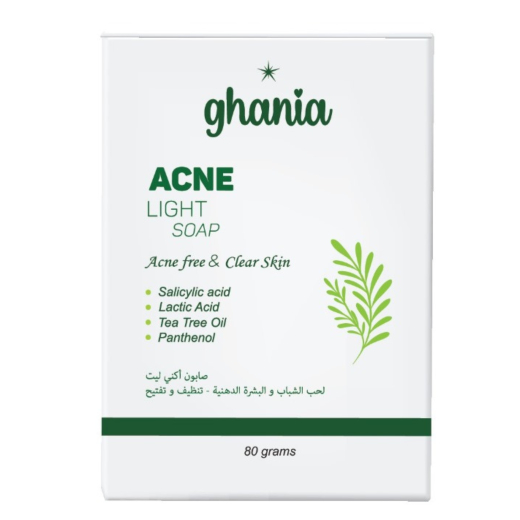 صابونه أكني لايت للبشرة الدهنية والمختلطة - من غانيه: حصلي على بشرة صافية وخالية من البثور مع صابون أكني لايت المخصص للبشرة الدهنية والمختلطة. يتميز هذا الصابون الفعّال بتركيبته الفريدة التي تحتوي على حمض الساليسيليك لتنظيف المسام بعمق، وزيت شجرة الشاي لمكافحة البكتيريا المسببة لحب الشباب، والبانثينول لترطيب البشرة ومنع الجفاف والتهيج.