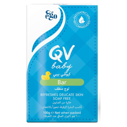 صابونة اطفال مناسب للبشرة الحساسة والجافة والمصابة بالحكة- من كيوفي: يتميز اللوح المنظف من كيوفي بيبي بتركيبة بدرجة حموضة متوازنة تساعد في الحفاظ على الحماية الطبيعية للبشرة. يحتوي الصابون على درجة حموضة أعلى مما قد يسبب التهيج. أنعشي بشرة طفلك مع غسول كيو في الذي يتميز بتركيبة خفيفة وفعالة خالية من الصابون مصممة خصيصًا للبشرة الحساسة. اللوح المنظف من كيوفي بيبي مناسب للاستخدام اليومي وللبشرة الحساسة والجافة والمصابة بالحكة.