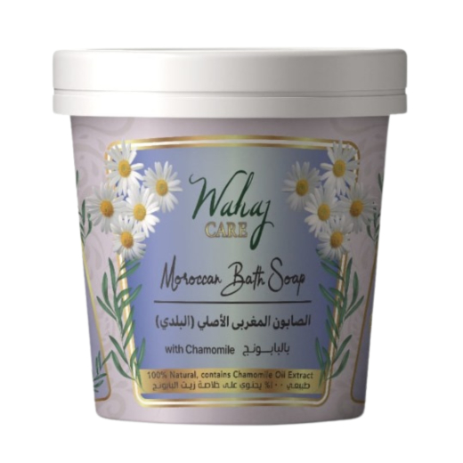 صابون مغربي بالبابونج - من وهج كير: صابون وهج كير المغربي الأصلي بالبابونج يجمع بين الخصائص التقليدية للصابون المغربي الفاخر وبين فوائد خلاصة البابونج المهدئة للبشرة. يعزز هذا الصابون تجربة العناية بالبشرة بفضل مكوناته الطبيعية التي تعمل على تنظيف عميق، إزالة الخلايا الميتة، وتلطيف البشرة، مما يجعله مناسبًا للبشرة الحساسة والمعرضة للالتهابات. يحتوي على خلاصة البابونج التي تمنح البشرة انتعاشًا وراحة، وتتركها ناعمة ونضرة مع رائحة عطرية لطيفة.