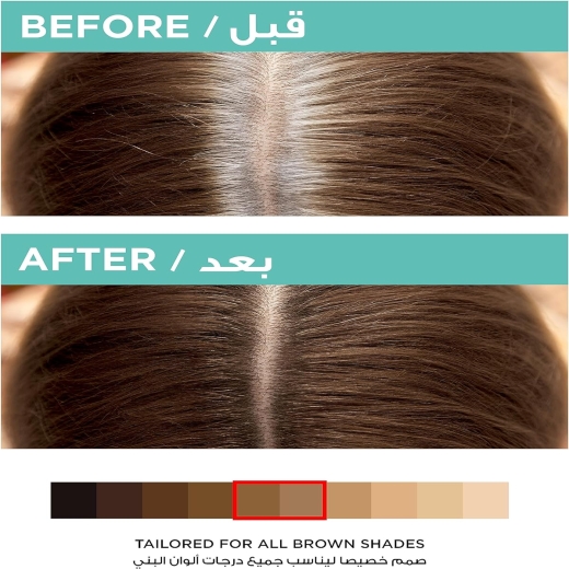 صبغة بخاخ فورية ماجيك ريتاتش لون بني - من لوريال: يستهدف الناشر الدقيق الشعر الابيض بدقة وتوفر لك أصباغ الألوان الغنية تغطية ممزوجة بشكل مثالي. يخفي ماجيك ريتاتش وهو أول بخاخ خافي عيوب فوري للجذور، الشعر الأبيض والجذور في رشة سريعة واحدة فقط - متى وأين وكيف تحتاجه. 3 ثواني لجذور بلا شائبة! يطابق ويمتزج تمامًا مع درجات اللون السائدة، حتى ألوان صالونات التجميل من الشعر الأشقر الفاتح إلى الشعر الأسود، يدوم حتى يغسل، لا ينتقل وبتركيبة خفيفة حتى 30 استخدامًا.