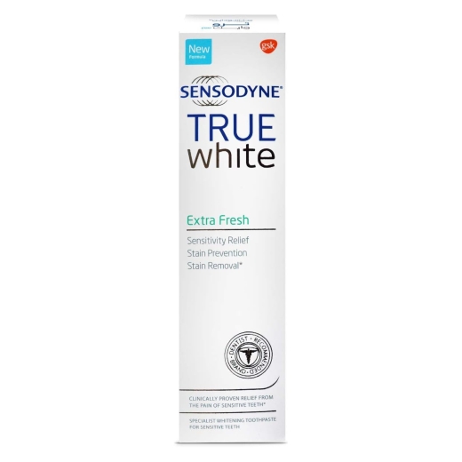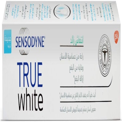 مغجون اسنان مبيض انتعاش اضافي - من سنسوداين: سنسوداين ثبت أن معجون الأسنان ترو اكسترا وايت اند فريش يخفف آلام الحساسية، ويساعد على استعادة اللون الحقيقي لأسنانك، ويترك طبقة واقية للمساعدة في منع تشكل بقع جديدة، مع الفلورايد للحماية من التسوس. ثبت سريريًا أنه يخفف الألم الناتج عن حساسية الأسنان. يساعد على استعادة اللون الطبيعي لأسنانك. يشكل طبقة واقية تساعد على منع تكوين بقع جديدة. معجون أسنان مصمم خصيصًا لتبييض الأسنان الحساسة. يُحفظ بعيدًا عن متناول الأطفال. غير مخصص للاستخدام من قبل الأطفال دون سن 12 سنة، إلا بناءً على نصيحة طبيب الأسنان أو الطبيب. تحافظ عادات العناية الجيدة بالفم على صحة أسنانك ولثتك، وتمنع تسوس الأسنان وأمراض اللثة ورائحة الفم الكريهة. ابدأ كل صباح باستخدام معجون الأسنان ترو اكسترا وايت اند فريش من سنسوداين ويأتي في عبوة سعة 75 مل.