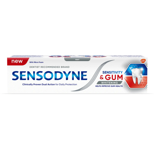معجون أسنان للثة مع تبييض 75 مل - من سنسوداين: سنسوداين للحساسية واللثة مع تبييض مثبت طبيًا للراحة من حساسية الأسنان وتعزيز صحة اللثة. سنسوداين للحساسية واللثة مع تبييض يبني طبقة حماية على المناطق الحساسة ويخفف بشكل فعال من حساسية الأسنان .