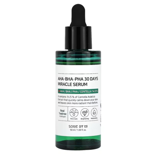 سيروم بأحماض ألفا هيدروكسي لبشرة أكثر نظافة وإشراقًا- من سوم باي مي: تقشير البشرة: يحتوي على مزيج من أحماض ألفا هيدروكسي، وبيتا هيدروكسي، وبولي هيدروكسي لتقشير البشرة وتنظيف المسام1.