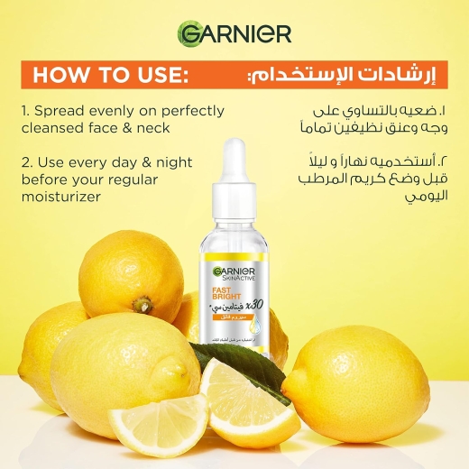 سيروم فيتامين سي 30X سكين أكتيف مضاد للبقع - من غارنييه: سيروم فيتامين سي للتفتيح السريع من غارنييه