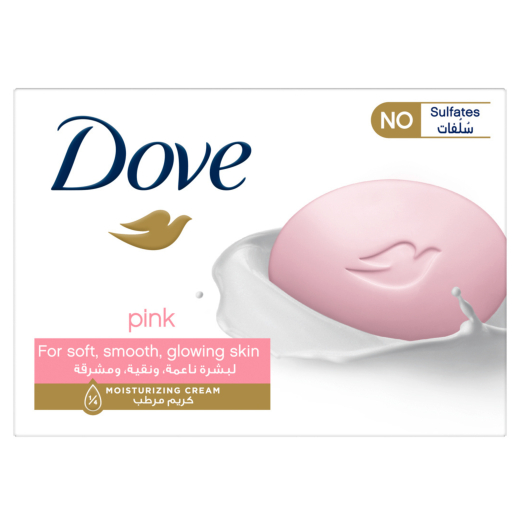 صابونة العناية بالبشرة لون وردي كبير - من دوف: DOVE صابون كريم الجمال، مناسب لجميع أنواع البشرة، الوردي، 1/4 كريم مرطب، 125 غم