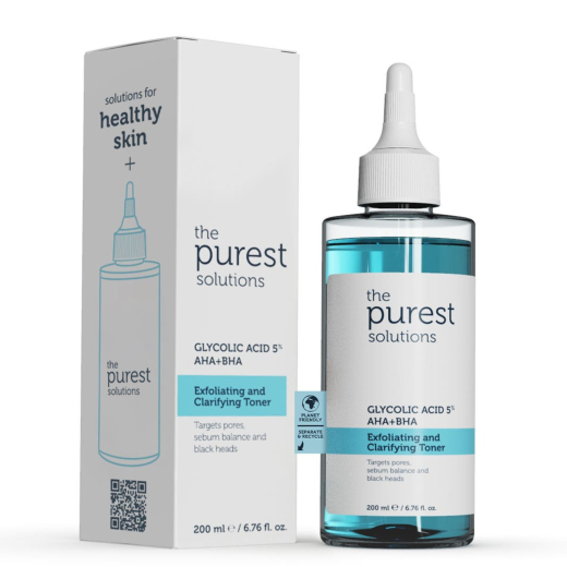 تونر مقشر مفتح بحمض الجليكوليك والفواكه-من بيوريست سوليوشنز: يساعد على تنظيف البشرة بلطف من الجلد الميت والزيوت والأوساخ وبقايا المكياج، ويقلل من مظهر المسام ويوازن إفرازات الدهون.