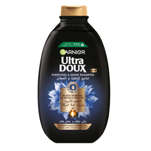 شامبو الترا دو لتنقية ولمعان الشعر بخلاصة الفحم الأسود وزيت حبة البركة - من غارنييه: اعتني بشعرك مع شامبو الترا دو للتنقية واللمعان بالفحم الاسود وزيت حبة البركة لفروة الرأس الحساسة والشعر الباهت.