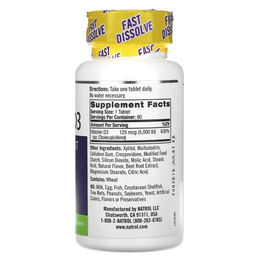 فيتامين د3لصحة العظام والمفاصل فراولة، 5000 وحدة دولية - من ناترول: سريع الذوبان