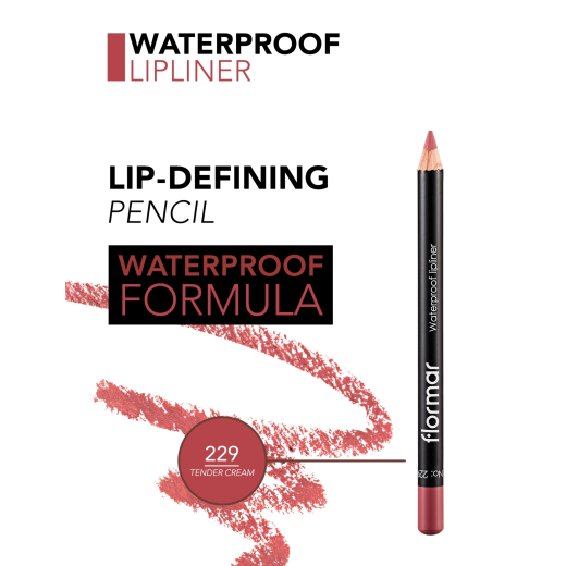 قلم تحديد شفاه مقاوم للماء كريمة طرية 229 - من فلورمار: ساعدك قلم تحديد الشفاه المضاد للماء على تحديد شفتيك بسهولة ويضيف تحديدًا بفضل البوليمرات الخاصة في تركيبته. بالإضافة إلى ذلك، فإنه يزيد من قوة ثبات أحمر الشفاه عن طريق منعه من السيلان أو التلطخ. مقاوم للرطوبة والعرق، كما يجعل قلم تحديد الشفاه من فلورمار شفتيك تبدوان ناعمتين لفترة أطول. متوفر بألوان مختلفة، ويوفر محدد الشفاه المضاد للماء أساسًا لمكياج يدوم طويلاً.
