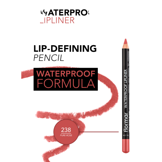 قلم تحديد شفاه مقاوم للماءورد نقي رقم 238 - من فلورمار: ساعدك قلم تحديد الشفاه المضاد للماء على تحديد شفتيك بسهولة ويضيف تحديدًا بفضل البوليمرات الخاصة في تركيبته. بالإضافة إلى ذلك، فإنه يزيد من قوة ثبات أحمر الشفاه عن طريق منعه من السيلان أو التلطخ. مقاوم للرطوبة والعرق، كما يجعل قلم تحديد الشفاه من فلورمار شفتيك تبدوان ناعمتين لفترة أطول. متوفر بألوان مختلفة، ويوفر محدد الشفاه المضاد للماء أساسًا لمكياج يدوم طويلاً.